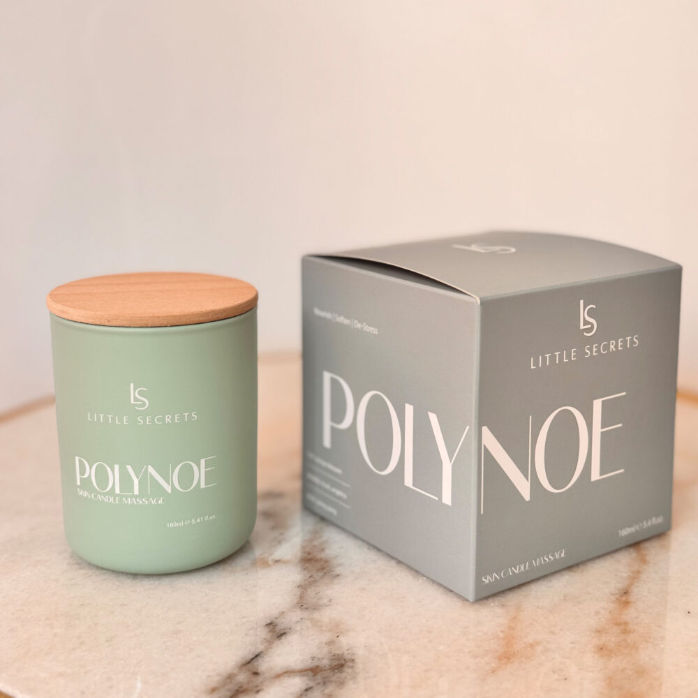 Το Polynoe Candle Massage περιέχει ένα μαγευτικό συνδυασμό αρωμάτων από άνθη πορτοκαλιάς, μόσχο, angelica και ylang-ylang.