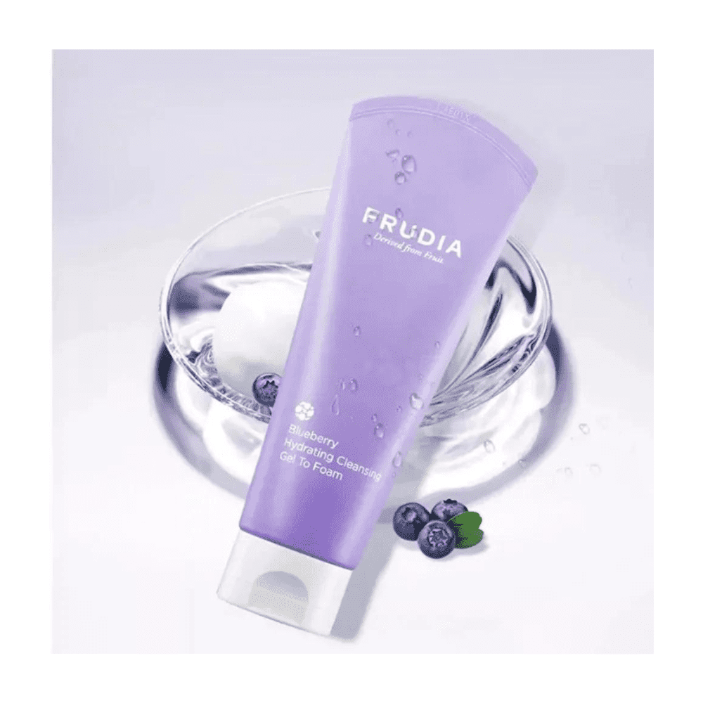 Blueberry Hydrating Cleansing Gel to Foam της Frudia είναι αφρώδες τζελ καθαρισμού προσώπου με εκχύλισμα μύρτιλου που καθαρίζει αποτελεσματικά το πρόσωπο χωρίς να ξηραίνει την επιδερμίδα. Η υφή του τζελ μετατρέπεται σε πλούσιο αφρό και απομακρύνει τους ρύπους χωρίς να αφυδατώνει το δέρμα.