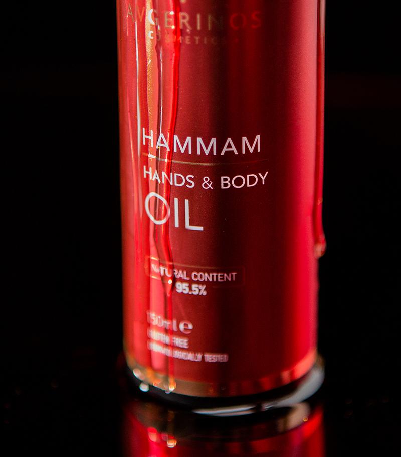Πολυχρηστικό λάδι για ενυδάτωση- θρέψη- λάμψη του σώματος , των μαλλιών και τα νυχιών. 95,5 % συστατικά φυσικής προέλευσης Ξηρό έλαιο που συνδυάζει τρία φυτικά έλαια και βιταμίνη Ε για πλούσια θρέψη, τόνωση και λάμψη χωρίς να αφήνει λιπαρά κατάλοιπα. Επιπλέον, περιέχει ειδικά επιλεγμένα αιθέρια έλαια για να απολαμβάνουμε την εμπειρία ενός spa στο ..σπίτι χάρη στην τόνωση, αναζωογόνηση και ευεξία που προσφέρουν. •Το έλαιο macadamia με υψηλή περιεκτικότητα σε βιταμίνες Α, Β1, Β2, Β3 , C και Ε, πρωτεΐνες, πολύτιμα μέταλλα- μαγνήσιο και σίδηρο- , λιπαρά οξέα και πλούσιο σε παλμιτελαϊκό οξύ Ω-7 προσφέρει ενισχυμένη αντιοξειδωτική δράση και ενυδατική δράση. •Το λάδι ελιάς από βιολογικές καλλιέργειες πλούσιο σε βιταμίνες Α, Ε, πολυφαινόλες και ακόρεστα λιπαρά οξέα – ελαϊκό, λινολεϊκό και λινολενικό- ενυδατώνει, θρέφει σε βάθος, καταπολεμά την έντονη ξηρότητα, αναδομεί, ενισχύει την ελαστικότητα και εξουδετερώνει τις ελεύθερες ρίζες. •Το λάδι argan προσφέρει πλούσια θρέψη, «κλειδώνει» την υγρασία , προστατεύει και επανορθώνει τα ταλαιπωρημένα δέρμα, μαλλιά και νύχια. •Η βιταμίνη Ε προστατεύει από το οξειδωτικό στρες, εμποδίζει την εξάτμιση νερού από τις κατώτερες στιβάδες αποτρέποντας την αφυδάτωση και έχει ενισχυμένη αντιφλεγμονώδη δράση. Ενισχυμένο με το HAMMAM, ένα ανατολίτικο, μυστηριώδες άρωμα από πικάντικα μπαχαρικά και βανίλια. ΑΡΩΜΑΤΙΚΗ ΠΥΡΑΜΙΔΑ Νότες Κορυφής: Γιασεμί Σαμπάκ, Βανίλια Νότες “Καρδιάς”: Γλυκάνισος, Καραμέλα Νότες Βάσης: Σανταλόξυλο, Βρύα Βελανιδιάς Σύνθεση δερματολογικά ελεγμένη, vegan, χωρίς γλουτένη και parabens. Κυκλοφορεί σε συσκευασία 150ml.