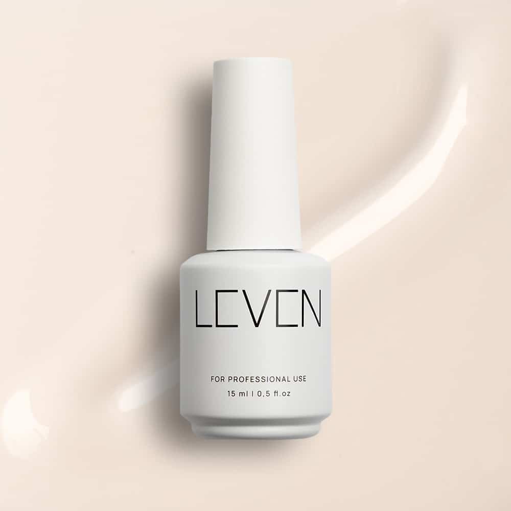 - Εφαρμογή του Primer LEVEN σε όλη την επιφάνεια της ονυχιαίας πλάκας (ΠΡΟΣΟΧΗ: Τοποθετήστε μικρή ποσότητα primer, χωρίς να ακουμπήσετε το δέρμα). Για απλό ημιμόνιμο: Εφαρμογή μιας λεπτής στρώσης Base Pro LEVEN και πολυμερισμός. Για ενισχυμένο ημιμόνιμο: Εφαρμογή μιας λεπτής στρώσης Base Pro LEVEN, δημιουργία καμπύλης και πολυμερισμός.